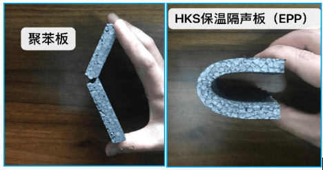 全面可彎曲:XPS、EPS(聚苯板)受力易斷裂,而HKS保溫隔聲板(EPP)可以實現180&deg;彎曲。